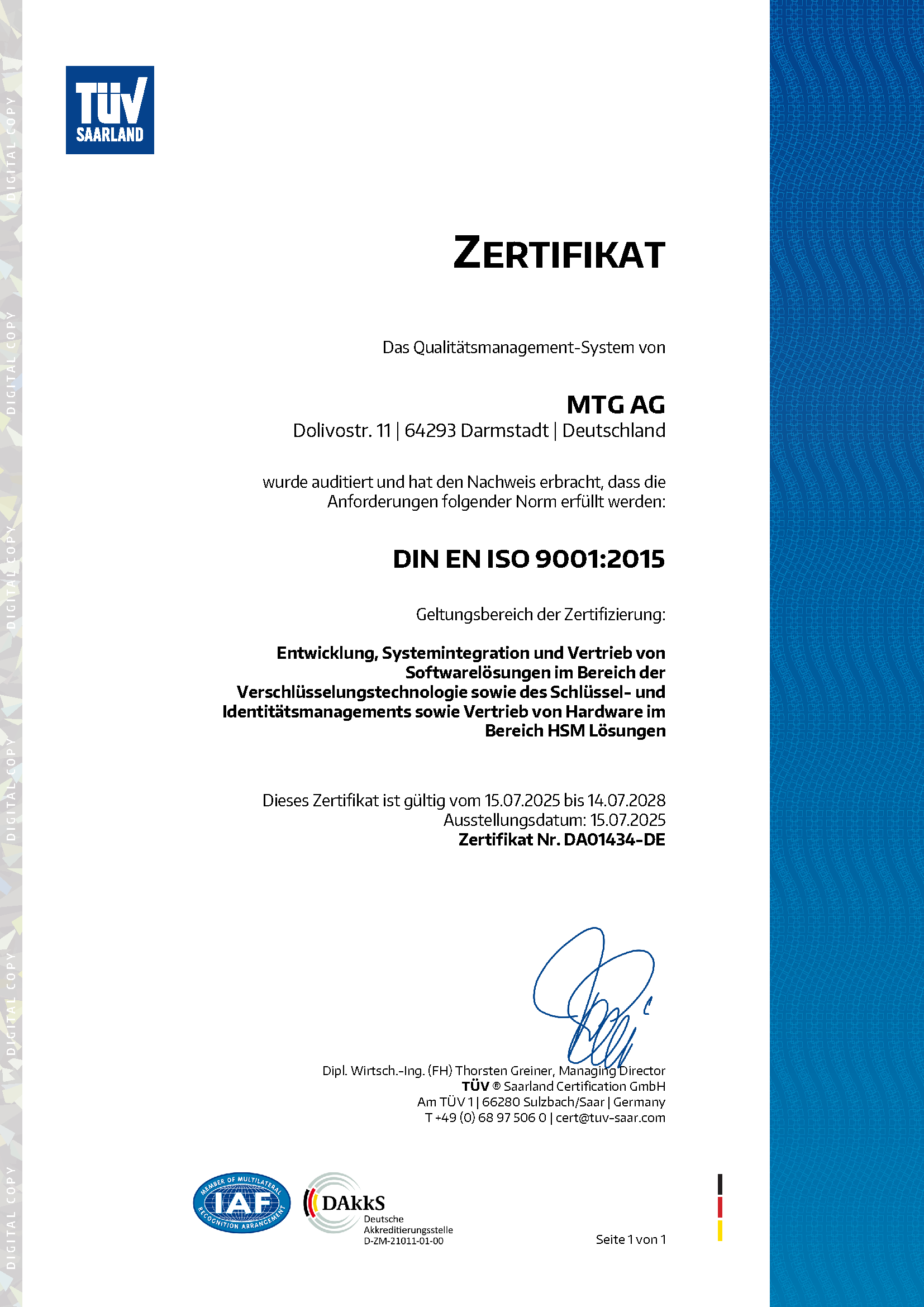 MTG AG was founded in 1995 and is a leading specialist for sophisticated encryption technologies "Made in Germany". We simplify the